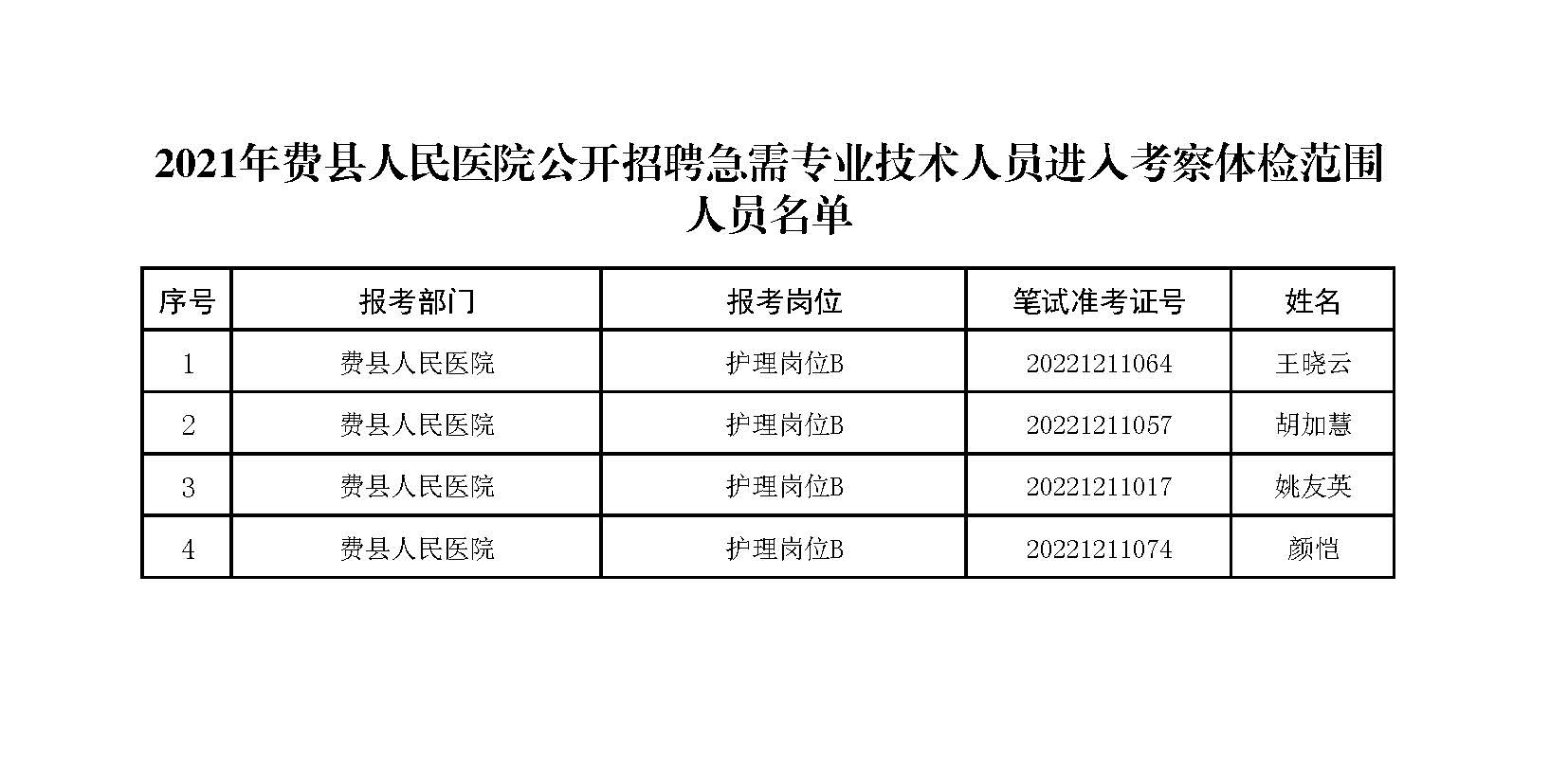 附件2:2021年费县人民医院公开招聘急需专业技术人员进入考察体检范围人员名单