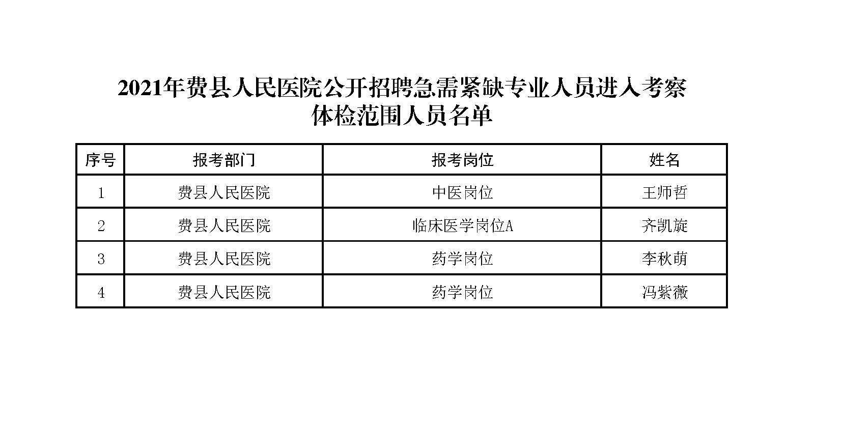 附件1:2021年费县人民医院公开招聘急需紧缺专业人员进入考察体检范围人员名单