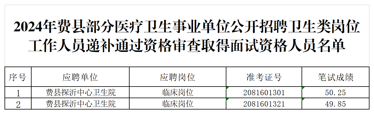 2、2024年费县部分医疗卫生事业单位公开招聘卫生类岗位工作人员递补通过资格审查取得面试资格人员名单