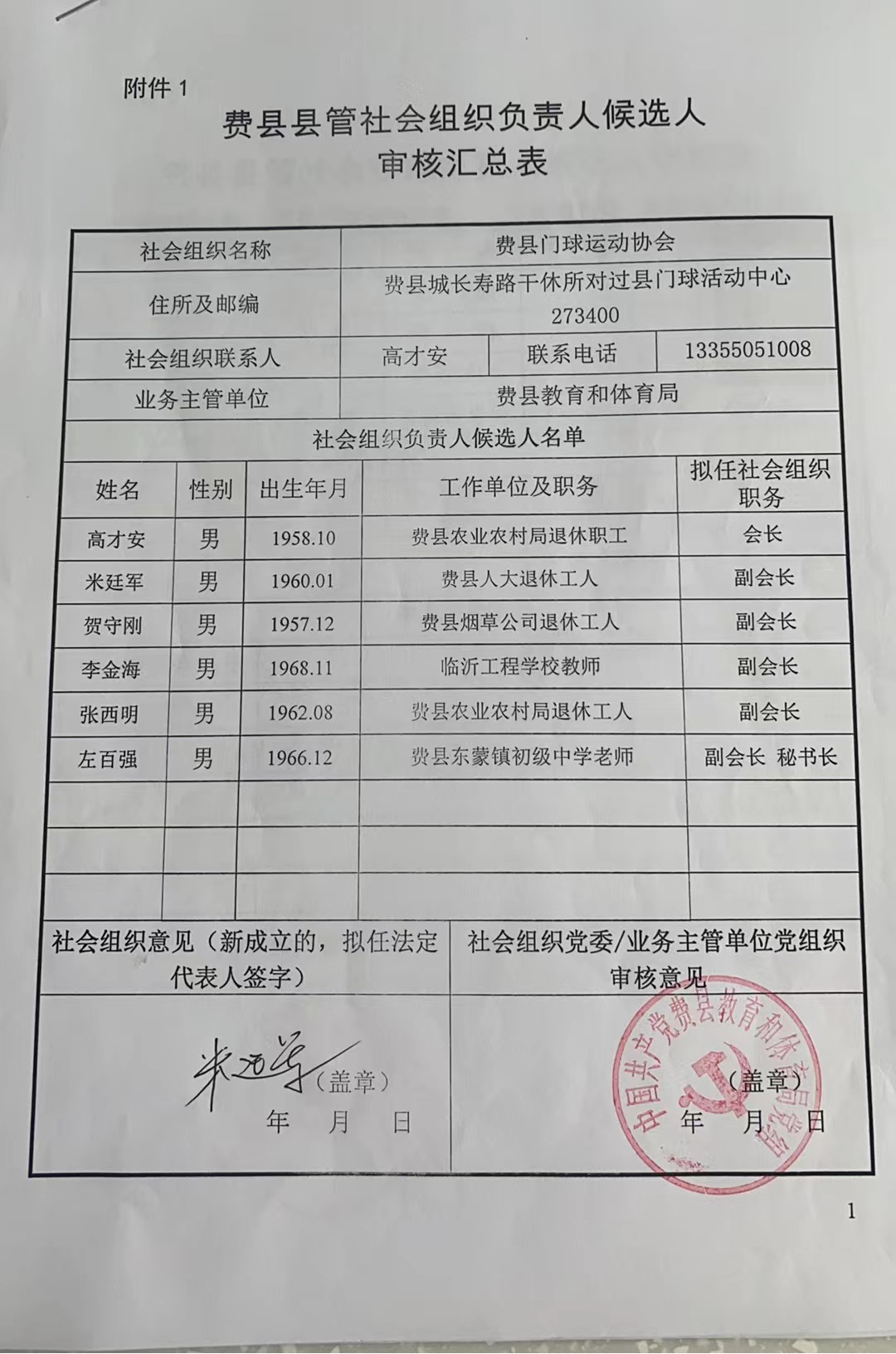 | 费县门球运动协会第一届负责人候选人人选公示 | ||||||||||||||||||||||||